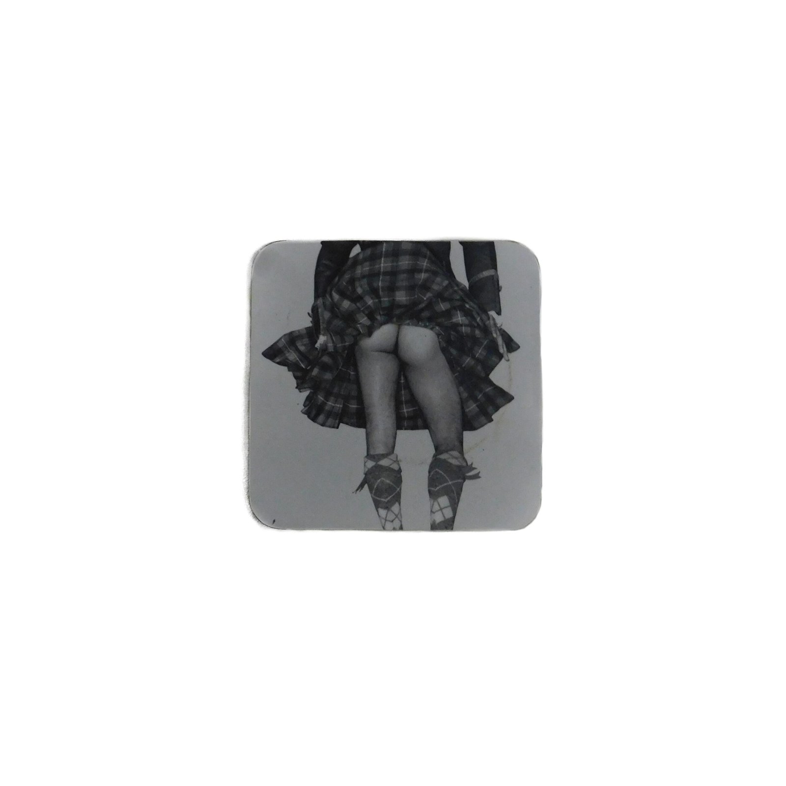This coaster from Falkirk, Scotland was gifted by a relative with a sense of humor. The “sexy” Scottish men in kilts is a long standing joke throughout Scotland often scene in calendars or coasters.
